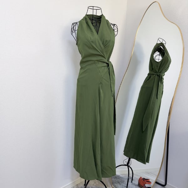流れるようなシルエットが、心まで軽くしてくれるワンピースです。