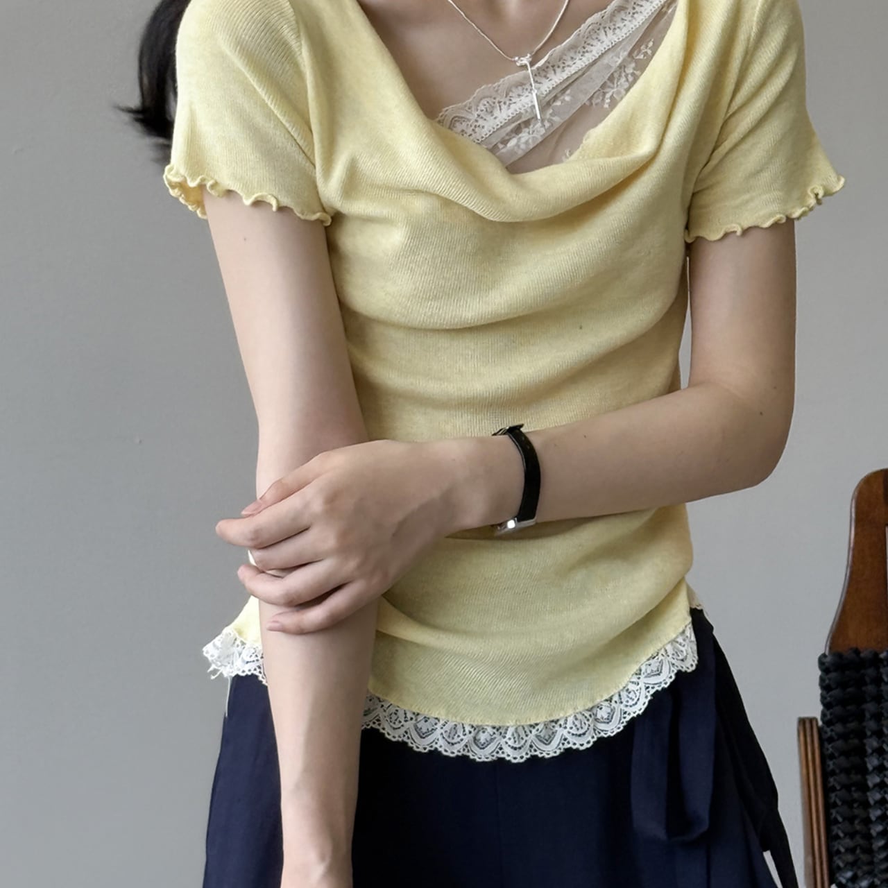 ふんわりとしたドレープと繊細なレースで、“大人の可憐さ”を纏える一枚。