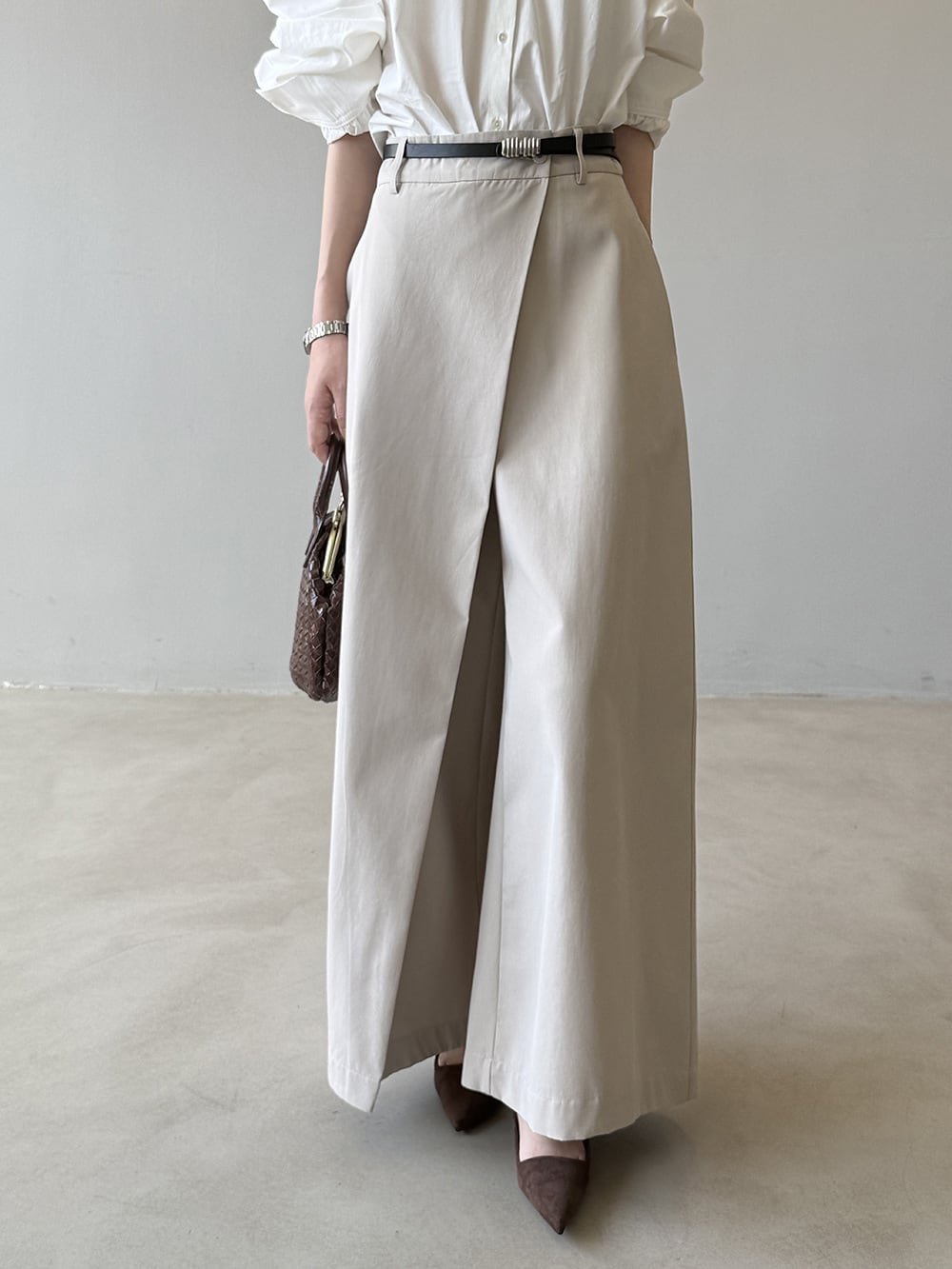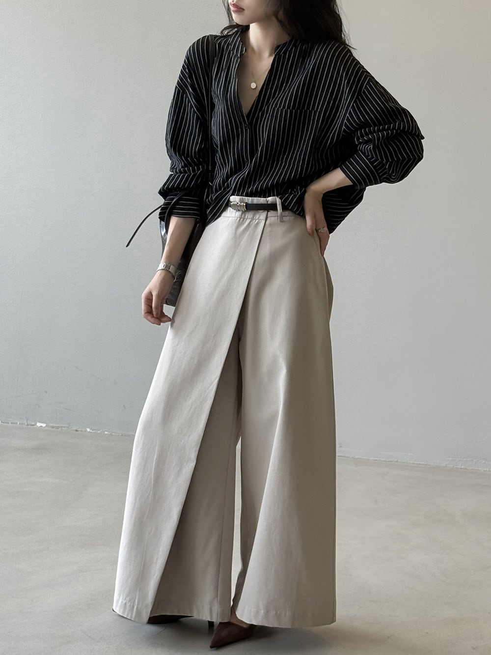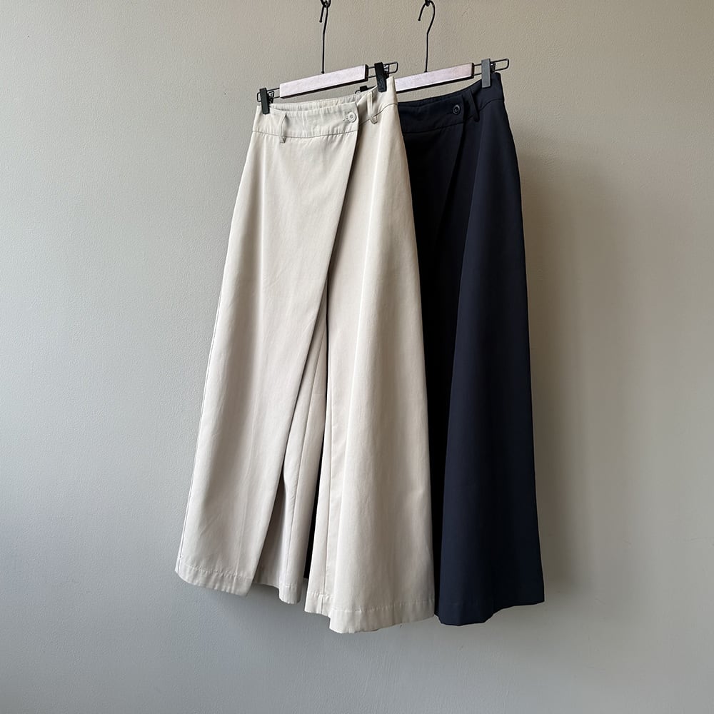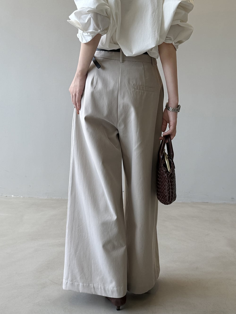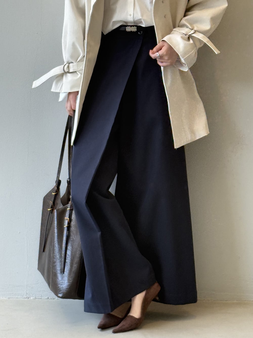 シンプルな中に個性と立体感を添えるワイドパンツ。