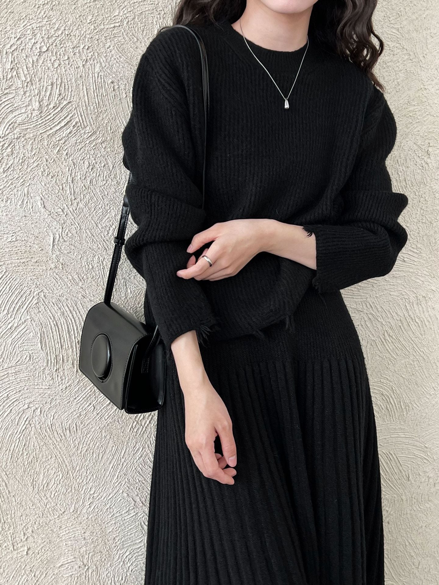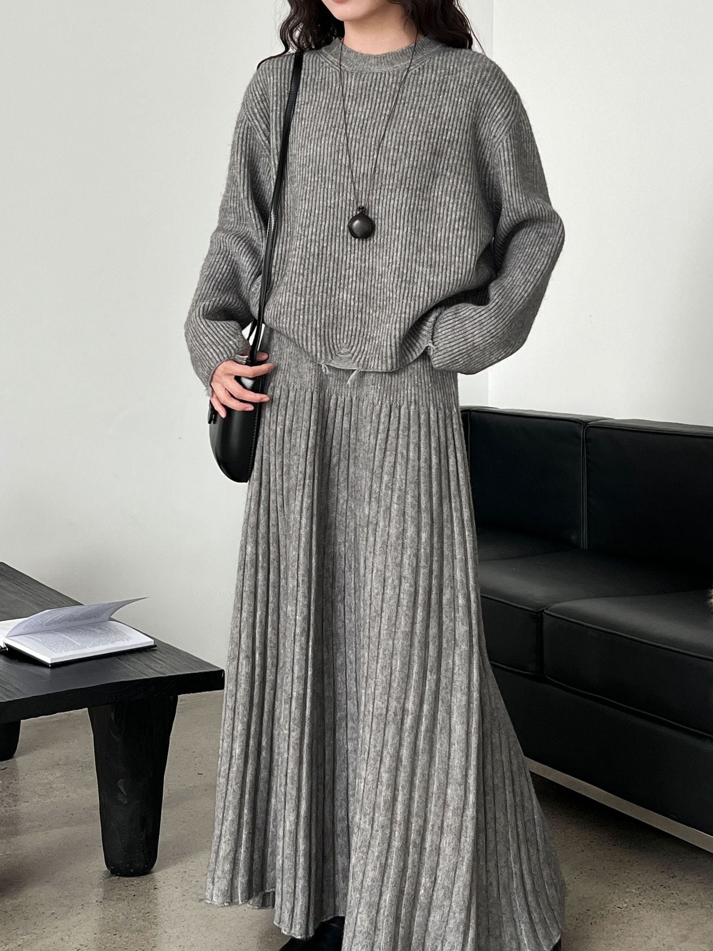 ニットセットアップ (ラウンドネック ニットトップス&ハイウエストプリーツスカート)