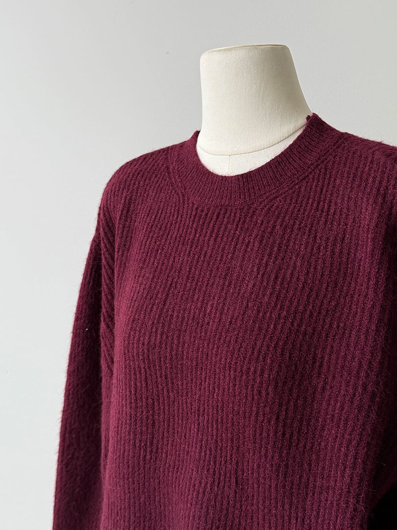 トップスはほどよくゆとりを持たせたラウンドネックニット。